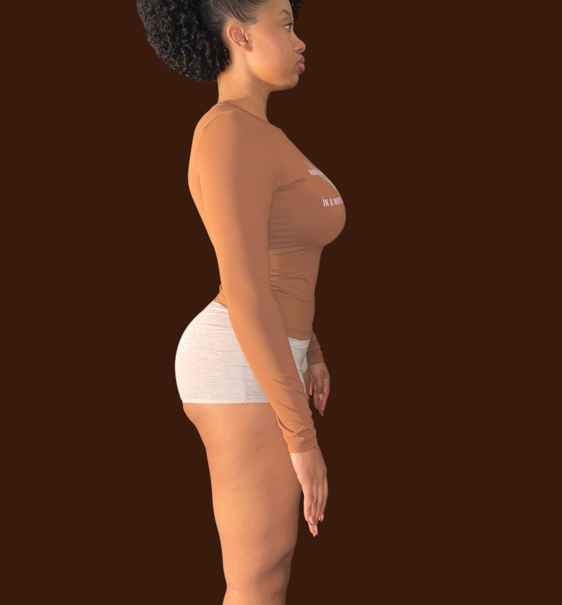 Designed to hug your curves and keep everything sitting right, this isn’t just a shirt—it’s a reminder that your presence alone is a problem. Whether you’re styling it with denim for a lowkey flex, or slipping into it with boy shorts & leg warmers for that pre-outfit lounge look, one thing is clear: